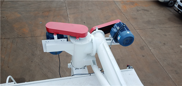 上裝罐體:罐體材質(zhì)采用4mm優(yōu)質(zhì)碳鋼板,整車(chē)3條絞龍,由3個(gè)5.5KW電機(jī)380V外接電源帶動(dòng)頂部絞龍用液壓控制舉升,可左右旋轉(zhuǎn)180°。罐體內(nèi)分為四個(gè)倉(cāng),可以獨(dú)立控制各分倉(cāng)卸料順序和速度。(備注:此報(bào)價(jià)為標(biāo)配,國(guó)產(chǎn)電機(jī),德力西電柜)